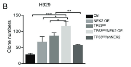 Feng X, Guo J, An G, Wu Y, Liu Z, Meng B, He N, Zhao X, Chen S, Zhu Y, Xia J, Li X, Yu Z, Li R, Ren G, Chen J, Wu M, He Y, Qiu L, Zhou J, Zhou W. Genetic Aberrations and Interaction of NEK2 and TP53 Accelerate Aggressiveness of Multiple Myeloma. Adv Sci (Weinh). 2022 Mar;9(9):e2104491. doi: 10.1002/advs.202104491. Epub 2022 Jan 27. PMID: 35088582; PMCID: PMC8948659.