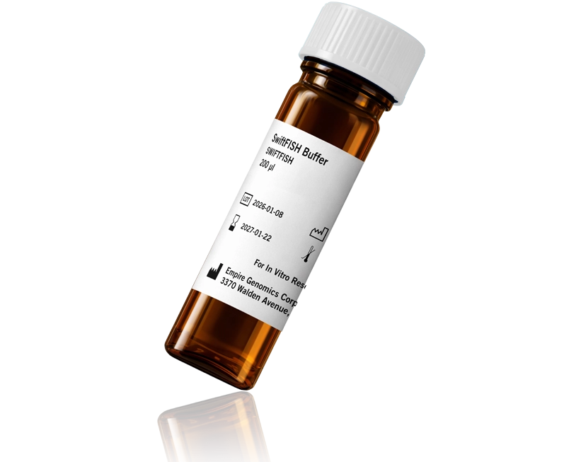 SwiftFISH® Fast Hybridization Buffer is Empire Genomics’ proprietary solution that dramatically reduces FISH probe hybridization time—from overnight to just 2 hours—without compromising signal clarity or strength.